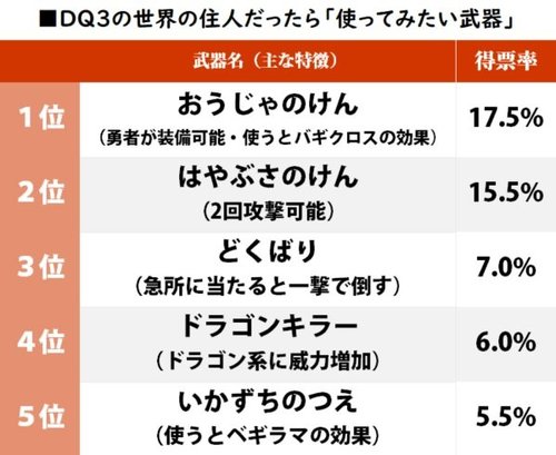 ■【ランキング結果】ドラクエ3「自分が使ってみたい武器」1位から10位の結果はコチラ■