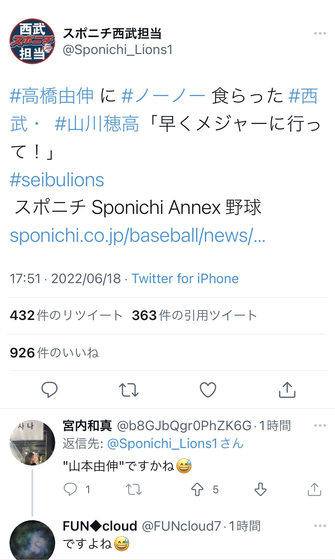 https://twitter.com/Sponichi_Lions1/status/1538081919677517825