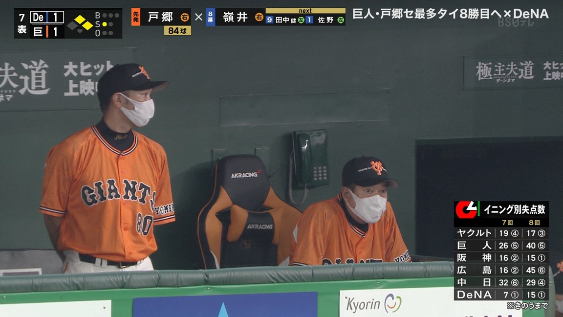 8回表終了後には「ジャイアンツはここのところ交流戦からそうなんですけど、8回の失点が多いんですよね。ここがヤクルトと違うところなんですよね」と嘆いていた。