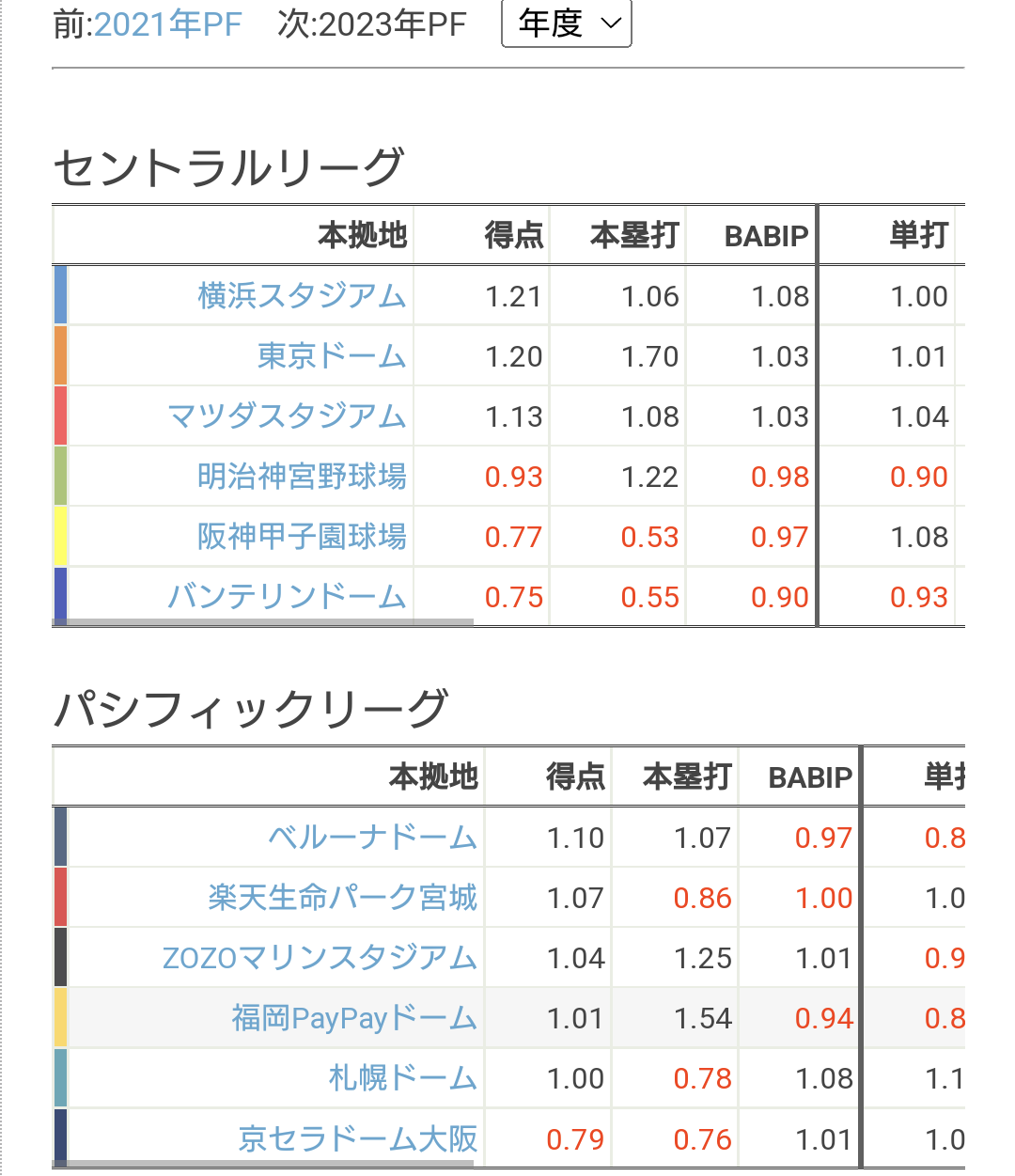 2022年最新球場パークファクターWWWWWWWWWWWWWWWWWWWWWWWWWWWWWWW