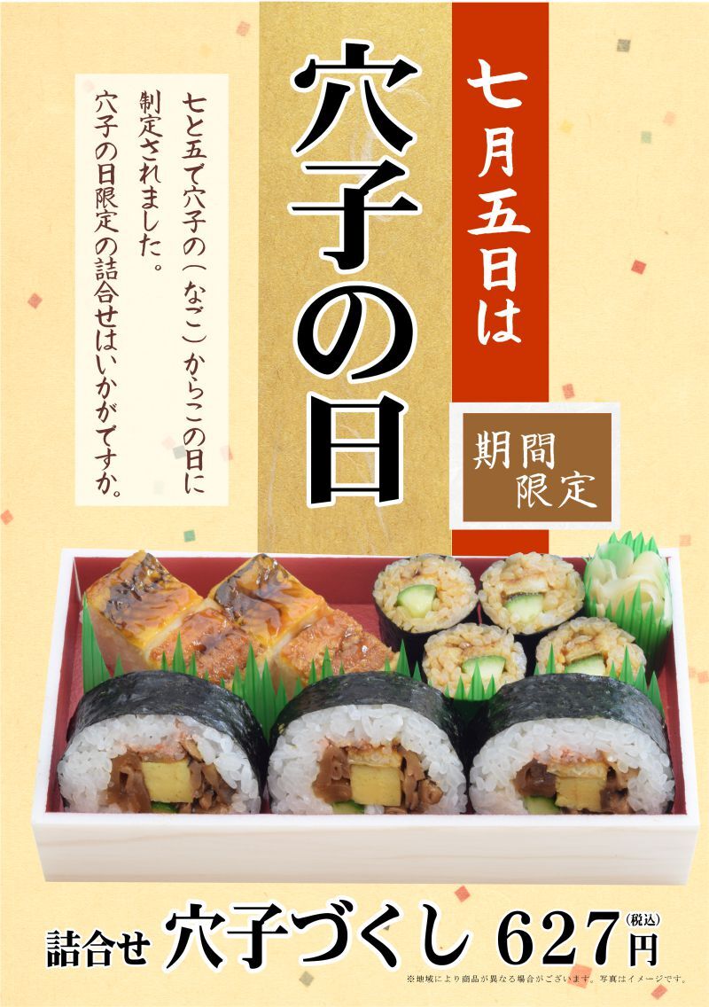 日付は「あな(7)ご(5)」(穴子)と読む語呂合わせと、穴子が最も美味しい時季であることから。