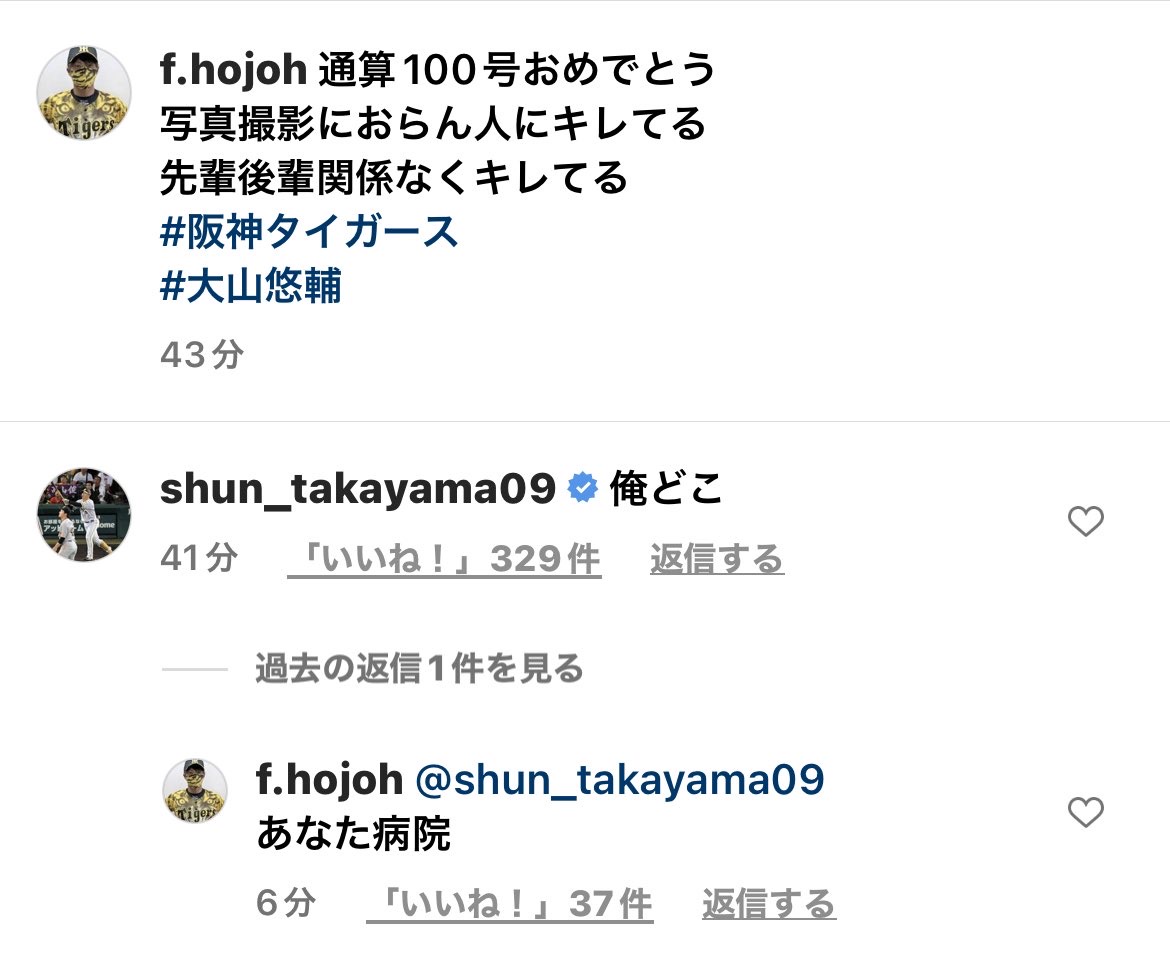 【阪神】北條「大山100号の記念写真撮るのにいないやつふざけんな」