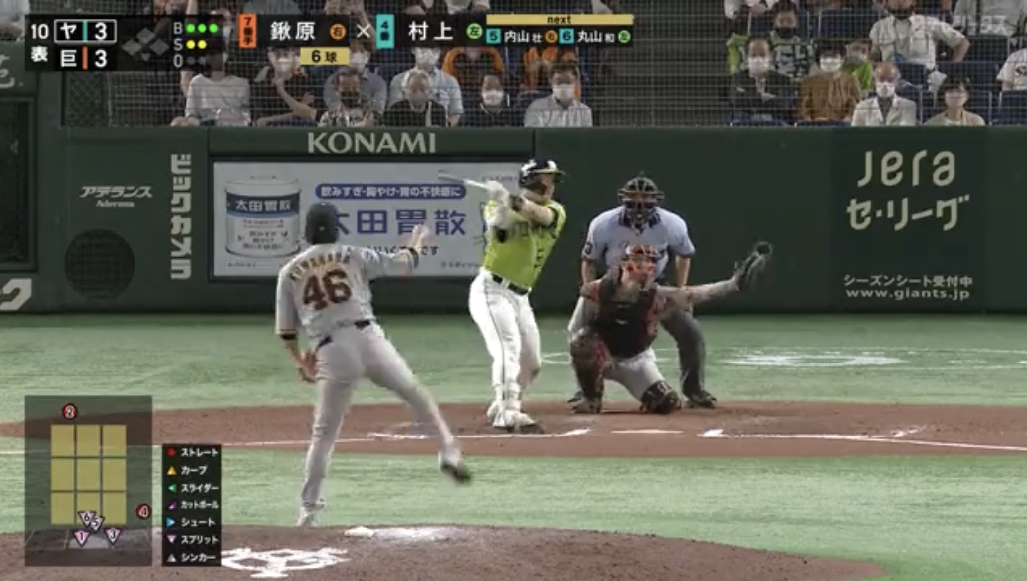 【GIF】巨人・鍬原、ヤク村上を空振り三振に斬った球が凄い