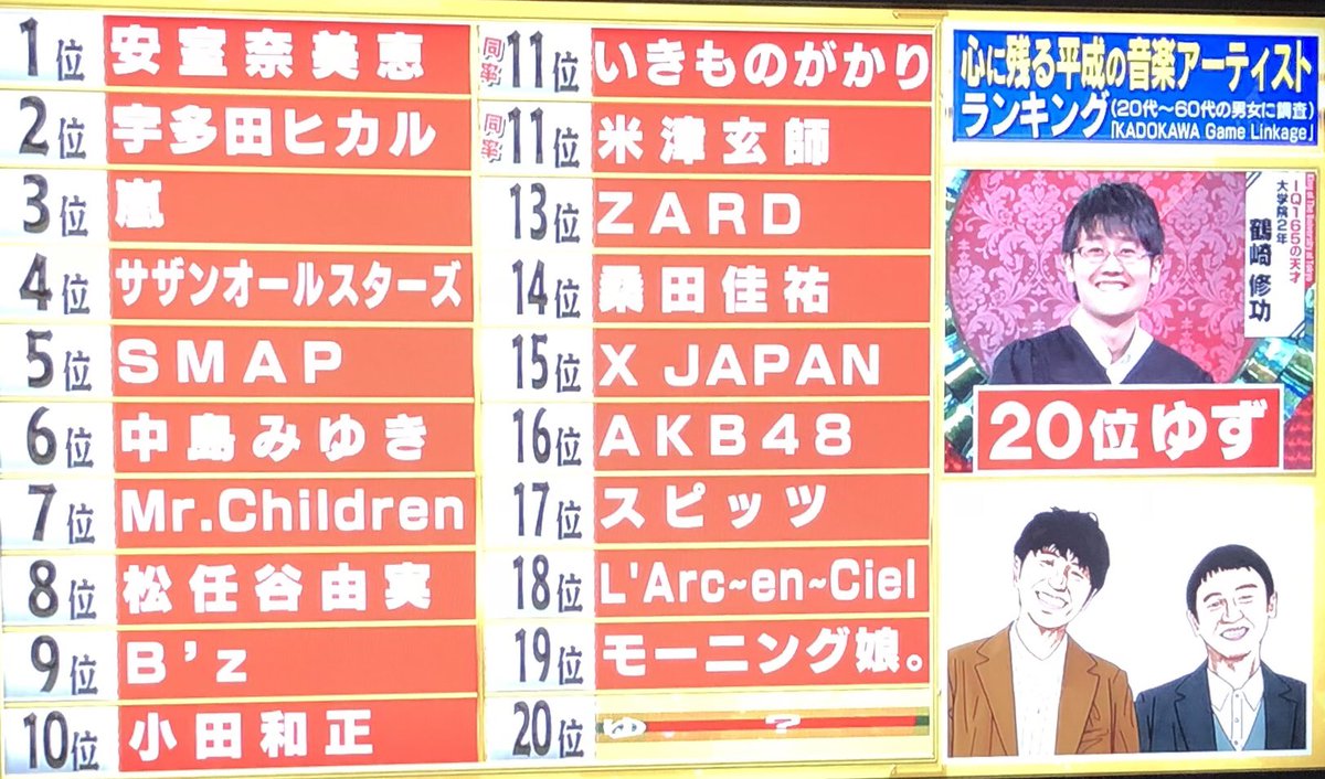 1万3802人に聞いた「心に残る平成の音楽アーティスト」ランキング (10代~60代の男女に調査)