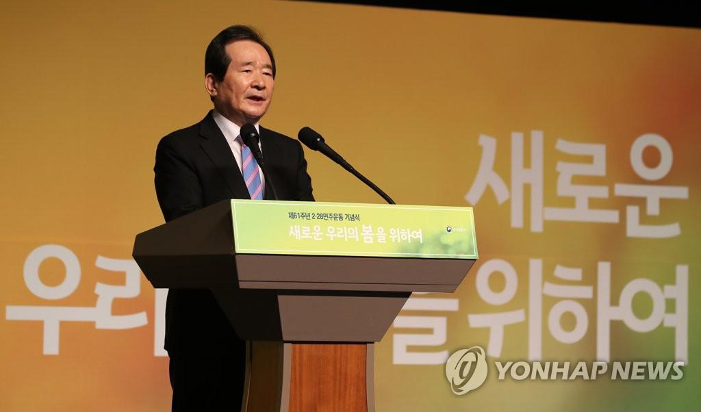 丁世均(チョン・セギュン)国務総理は28日「非常に冷たい風説を全身で乗り越え、新しい春の希望をひらいた2・28大邱(テグ)市民の正しさを記憶する」と話した。