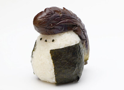 なんと、シマエナガを再現したおにぎりの上に、リーゼントに見立てた具材が大胆に乗っかっています!