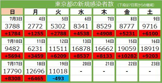 【注目】どうかな・・・昨日(7/19)の気になる東京都の新規感染者数は⁉