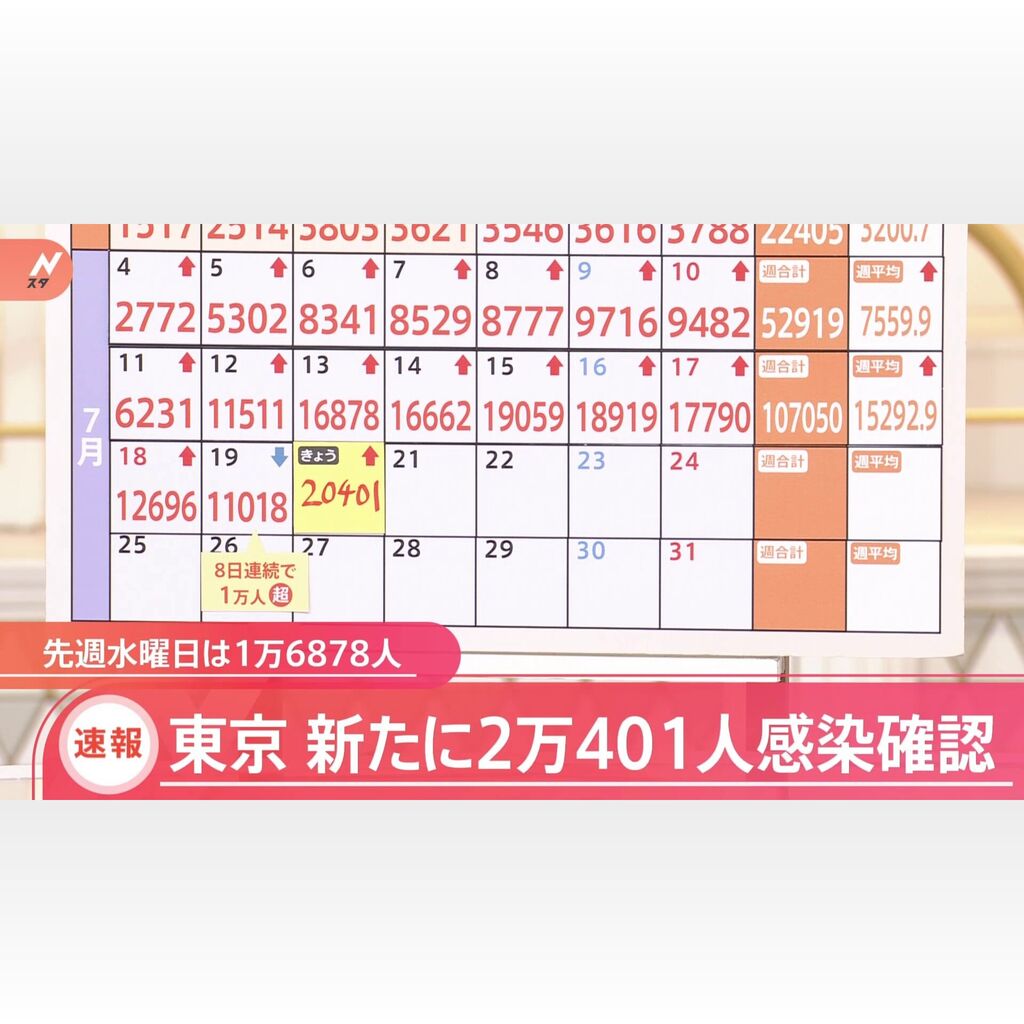 【注目】ギャーーーーー、昨日(7/20)の気になる東京都の新規感染者数は⁉