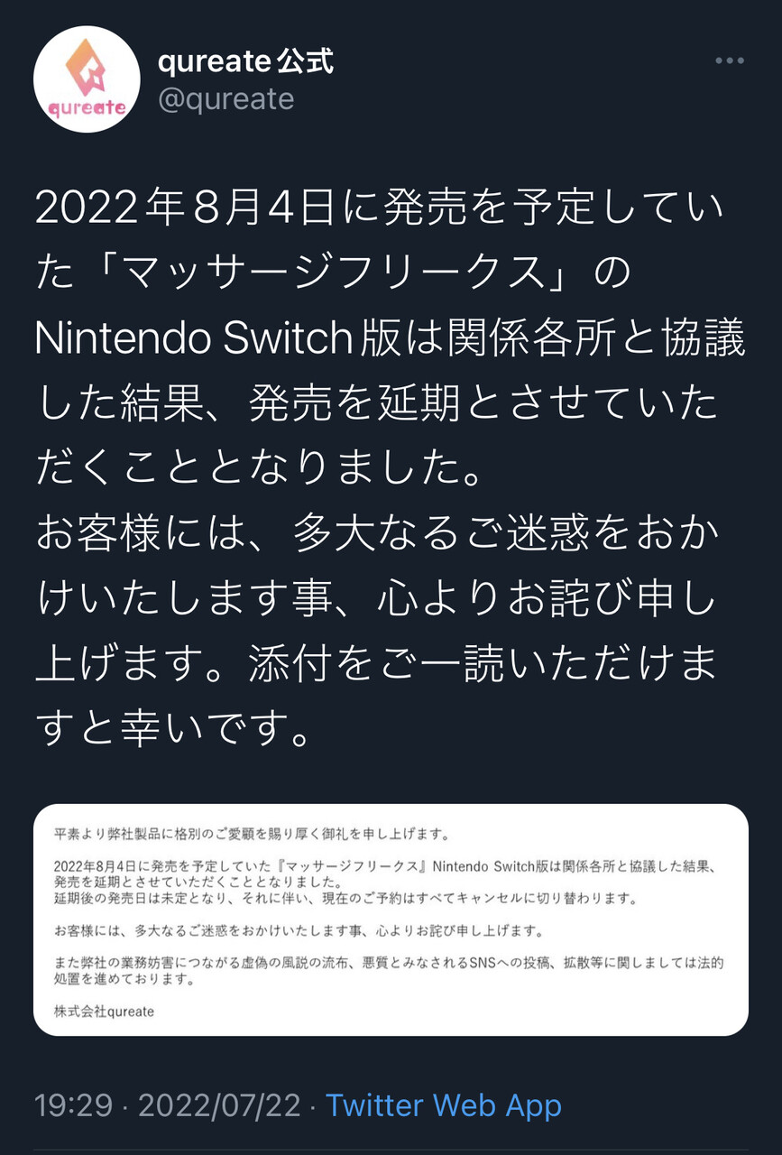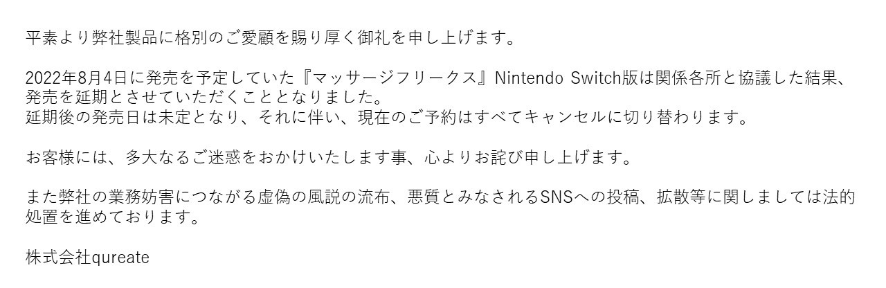【悲報】Switchの「エ●マッサージゲーム」さん、発売が延期になってしまう…