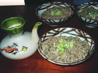 佐渡の手打ちそばは色が黒い田舎風で、そば粉100%のものや山芋と卵を繋ぎに使った繋ぎそばがあります。