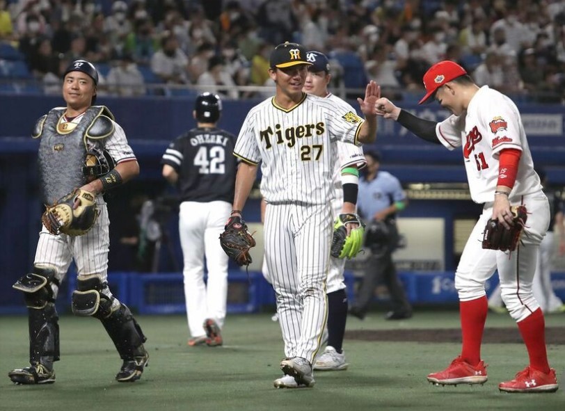 マイナビオールスターゲーム第2戦(27日、全セ―全パ、松山)全セの3番手で1ー1の五回に登板した伊藤将司投手(26)=阪神=は三者凡退で球宴デビューを飾った。松川(ロッテ)を空振り三振、小深田(楽天)を二ゴロ、清宮(日本ハム)を左飛で打ち取り「いやぁ~、ほっとしました」とコメント。「結構、真っすぐを強く投げられていたんで。良かったと思います。(マウンドでは)いやぁ~もう楽しかったです」と語った。2日間の収穫は「学べたというより、こういうすごい人たちとプレーできているんだなというのを噛み締めながら後半戦もしっかり投げていきたいなと思います」と意気込みを示した。また母校・横浜高が甲子園出場を決め「やっぱりうれしいですね。何か(プレゼントなどを)やれたらいいなと思います」と話していた。