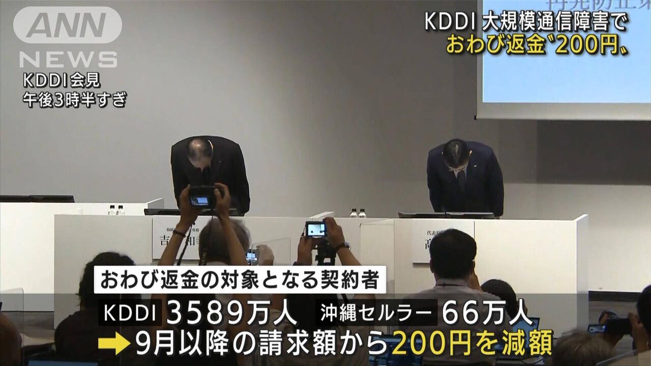KDDIは7月29日、7月の大規模通信障害の「おわび」として、ひとりあたり200円を返金すると発表した。返金の総額は73億円に及ぶそうだが、「200円」で許せるのか、許せないのか。ネットを見ると様々な声が噴き上がっていた。(文:昼間たかし)