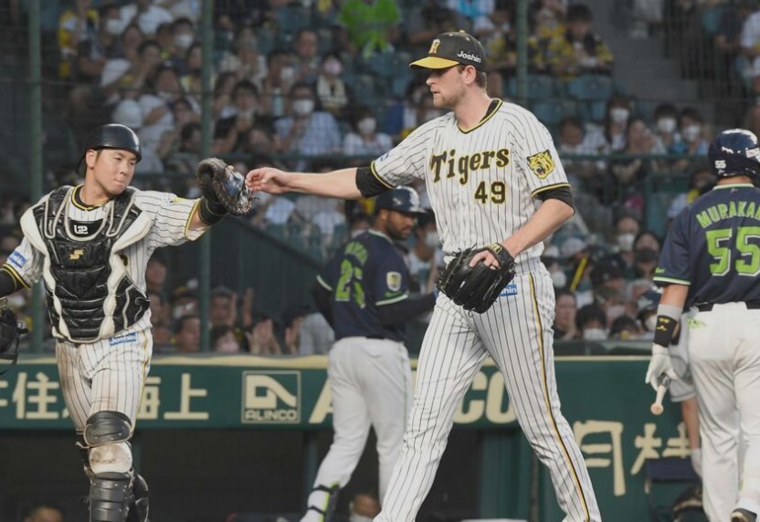 2死から青木に二塁打を浴びた六回には、福原投手コーチが慌てて通訳を伴ってマウンドに向かったが、山田を中飛に打ち取り、ここも得点を与えない。結局、この回で降板。6回72球、3安打無失点で勝ち投手の権利を得て、ベンチに下がった。