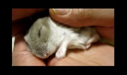 投稿者のそらまめさんの手の上で眠るジャンガリアンハムスターのロナウドちゃん。