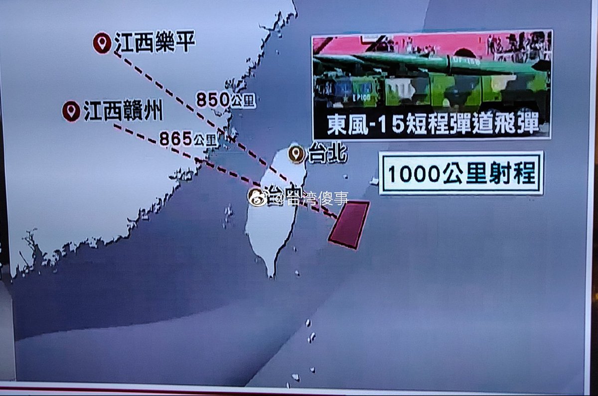 台湾国防省は声明で人民解放軍が午後1時56分に発射した複数の東風弾道ミサイルが北東部と南西部付近の海域に着弾したと述べたがそれ以上の詳細は明らかにしなかった。