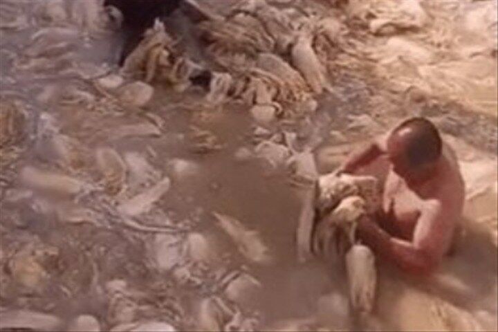 むしろ漬けてある塩水で身体を洗ってる