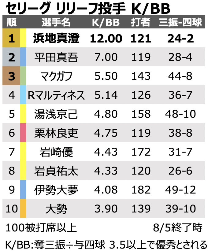 先発含めて今年与四球めちゃくちゃ少なくねえか