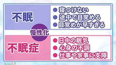 平均睡眠時間が6時間未満の人は狭心症や心筋梗塞になりやすく、男性はがんやアルツハイマーになるリスクも上昇し、8年後の死亡率が2.4倍になるという研究結果もある。