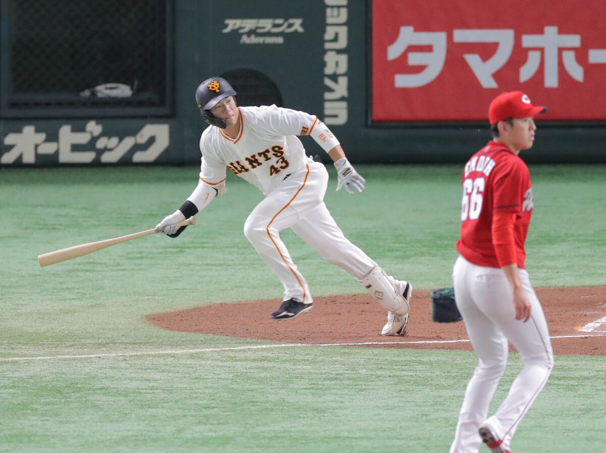 画像: 【巨人】バスターで先制二塁打を放った重信慎之介に原監督「力は持っている選手。俺が決めるというくらいの気持ちでプレーしてもらえたら」 : スポーツ報知 (hochi.news)