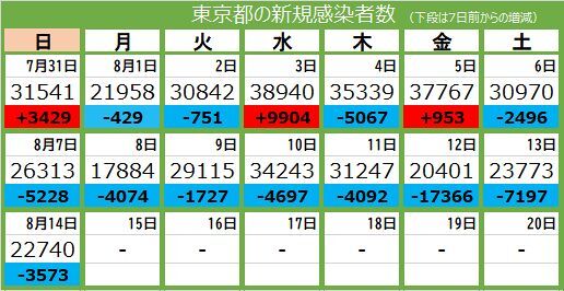 【注目】えっ・・・昨日(8/14)の気になる東京都の新規感染者数は⁉