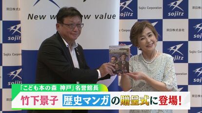 俳優の竹下景子さんが名誉館長を務める文化施設「こども本の森 神戸」や神戸市の図書館へ、総合商社の歴史マンガが寄贈され、贈呈式が行われました。