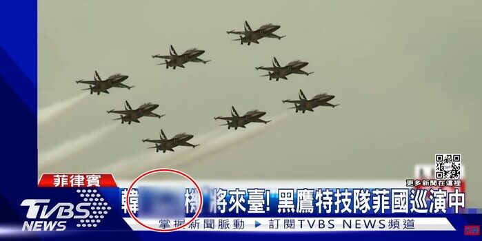 17日、FMコリアなどのオンラインコミュニティーによれば、台湾のTVBSはニュースを通じて、前日に(韓国)空軍のブラックイーグルス(第53特殊飛行戦隊)チームがフィリピンのエアショーに参加した後、台湾で給油を終えて韓国に戻ったことを報道した。