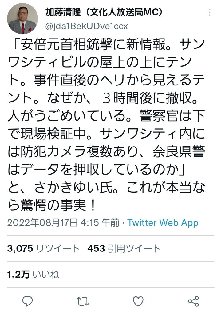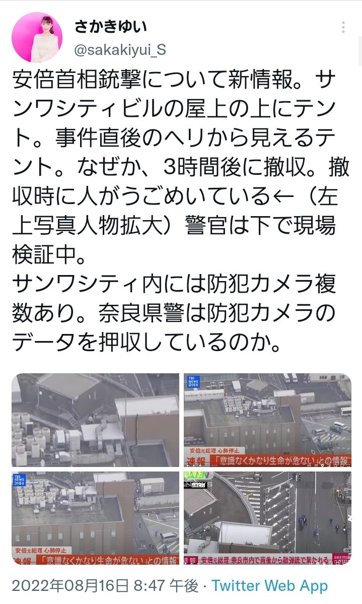 【陰謀論】安倍元首相銃撃事件「ビル屋上にスナイパー小屋」→誤り。動画やツイートが拡散、当事者が法的措置を検討