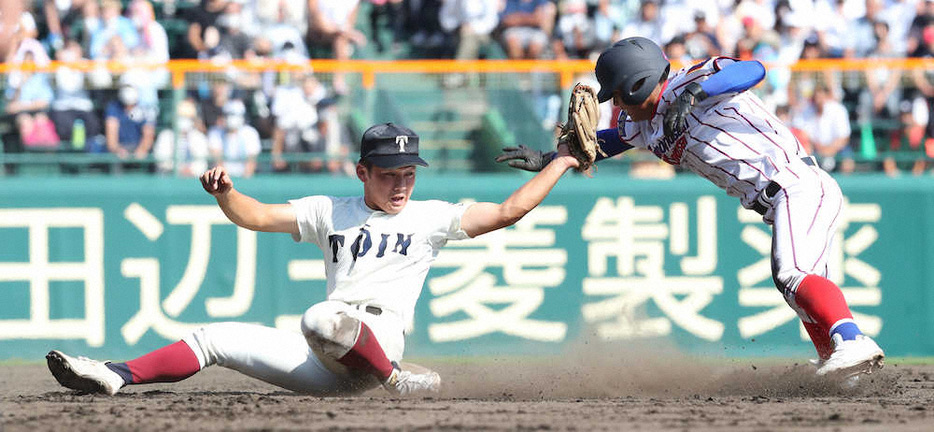 9回、下関国際の攻撃では、球場全体が大きな手拍子。まるで全員が下関国際の応援をしているかのような、一種異様な雰囲気に包まれた。「それだけの練習はやってきていたんですけど、のまれそうになるというか。2年生の前田が投げていたんですけど、その時に声をかけられなかったのが申し訳ないと思います」と後輩の左腕をかばった。