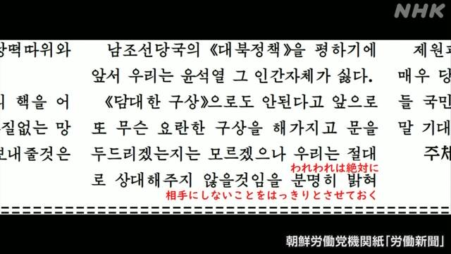 その理由として、来週22日から予定されている米韓合同軍事演習などを挙げて「提案の明くる日には侵略戦争演習を強行する恥知らずだ。人間として嫌いだ」とユン大統領を名指しで非難しました。