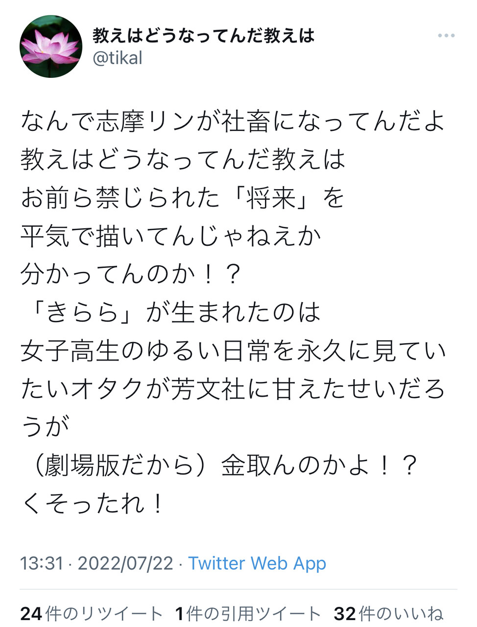 【悲報】ゆるキャンオタクさん、「社畜」になった志摩リンにダメージを受けてしまう…
