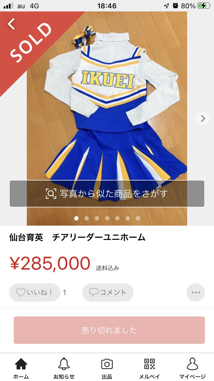 【画像】仙台育英チアガールのユニフォーム、メルカリ28万円落札www