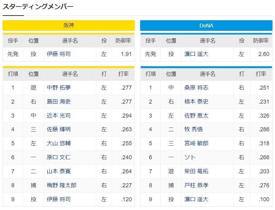 阪神ーDeNA スタメン 京セラドーム大阪 2022/8/24