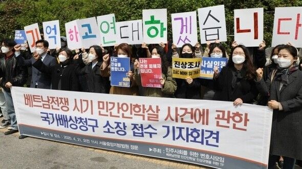 現在、ソウル中央地裁では「フォンニィ虐殺事件」被害者のグエン・ティ・タンさんが大韓民国を相手取って起こした損害賠償請求訴訟が進行中だが、政府は「被害の事実は信じられない」として、韓国軍の加害事実を認めていない。