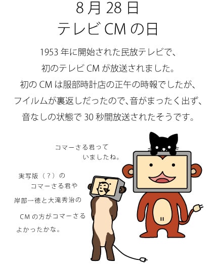 1953年(昭和28年)8月28日に開始された民放の日本テレビで、初のテレビCMが放送された。