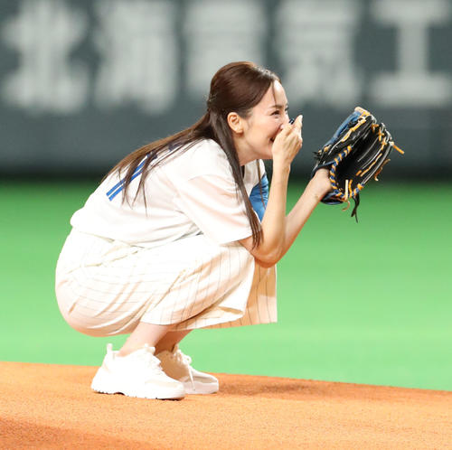 俳優の真飛聖(45)が27日、札幌ドームで行われた北海道日本ハムファイターズ対福岡ソフトバンクの試合前のファーストピッチイベントに登場した。