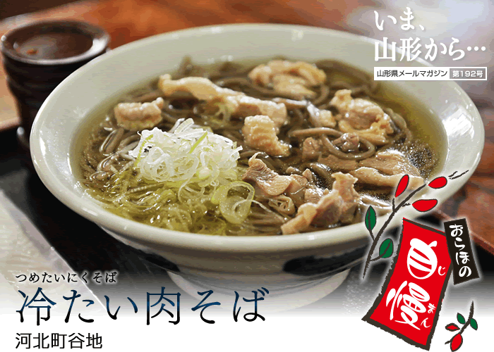 冷たい肉そばは、山形県の河北町発祥と言われる郷土食で、近年ではB級ご当地グルメとしても注目を浴びました。