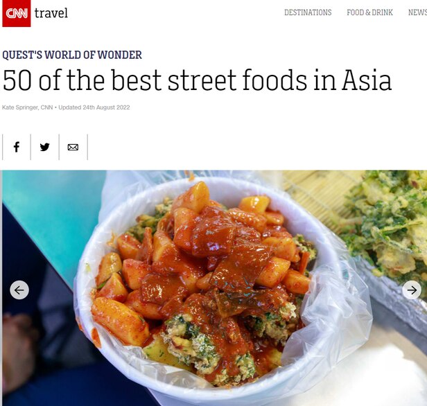 CNNは今月24日(現地時間)、「アジア最高のストリートフード50(50 of the best street foods in Asia)」を選んで発表した。同メディアは、各メニューの紹介に先立って「アジアはストリートフードを通して各様各色の豊かな味を提供している」とし、「アジアで是非食べてみるべき、大人気のストリートフード&ドリンクを選んだ」と説明した。