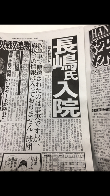 【巨人】長嶋茂雄終身名誉監督が入院「救急車で搬送されたのは事実です」病状などは不明