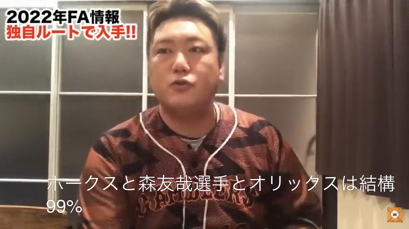 笠原「森友哉の移籍先は99%オリックス」