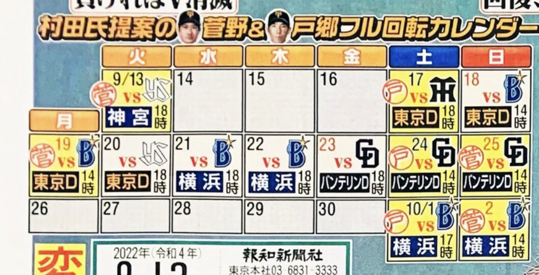 【ヘビロテ】巨人残り12戦 菅野4戦 戸郷3戦で逆転CSへ!!