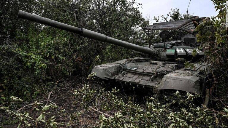 ハルキウ州イジューム郊外の村の森に放棄されたロシア軍の戦車=9月11日撮影/Juan Barreto/AFP/Getty Images
