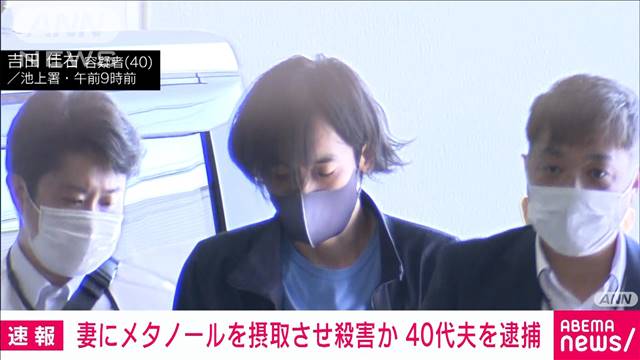 捜査関係者によると、吉田容疑者は1月14~16日午前8時ごろ、自宅で会社員の妻容子さん(40)にメタノールを摂取させ、殺害した疑いが持たれている。