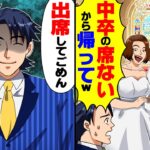 【驚愕】結婚式当日に新卒新郎新婦が「中卒社員の席ないから帰ってくださいw」俺「出席してごめん」→お望み通り即帰ったら