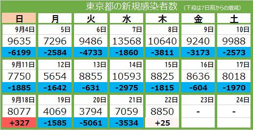 【注目】またですか⁉昨日(9/22)の気になる東京都の新規感染者数は⁉