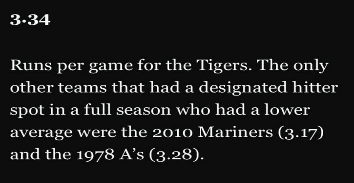公式サイトによると、1試合平均「3.34」は指名打者制のあるア・リーグでは2010年のマリナーズ(3.17)、1978年のアスレチックス(3.28)に次ぐ低さ。
