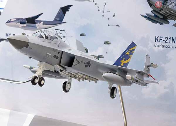 KF-21は韓国が国内企業主体で開発を進めている国産戦闘機であり、2022年7月19日には試作1号機が初飛行。近年開発されている戦闘機では一番新しい機体といえます。基本コンセプトは空軍で運用する陸上型であるものの、近年韓国は空母導入計画を発表しており、今回の艦載機型の模型展示はそれに呼応したものといえるでしょう。