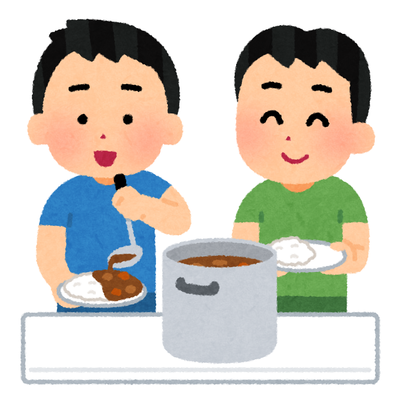 (出典 カレーを注ぐ男の子のイラスト(合宿) | かわいいフリー素材集 いらすとや)