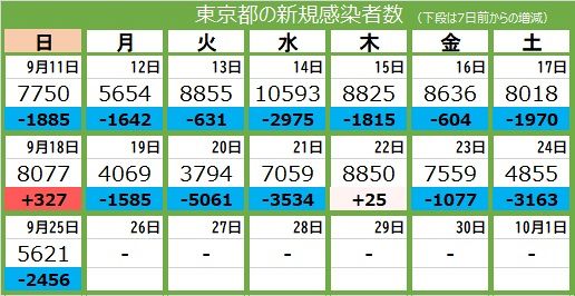 【注目】う~ん、昨日(9/25)の気になる東京都の新規感染者数は⁉