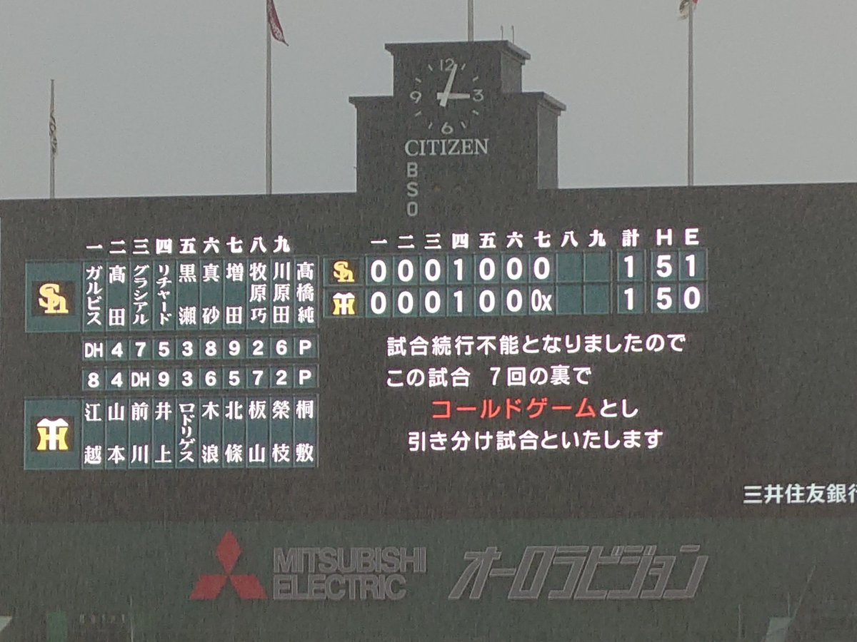 阪神2軍 阪神1ー1ソフトバンク 引き分け雨天コールド 甲子園球場