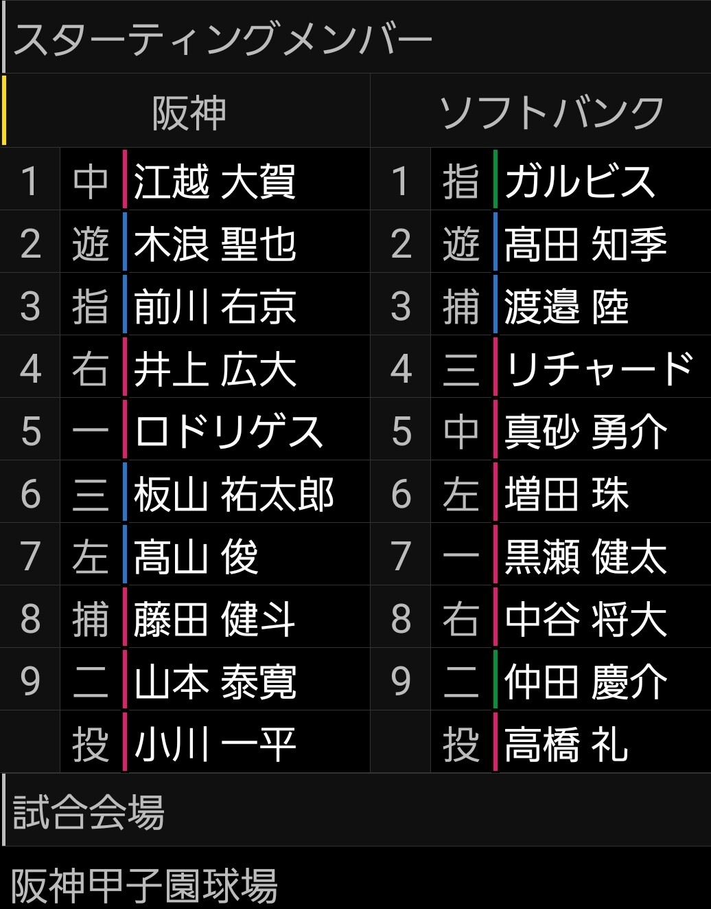 阪神2軍 阪神ーソフトバンク スタメン 甲子園球場
